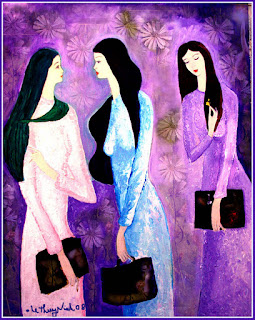 Chập Chờn Ru Khúc Vào Khuya (Thương tặng anh Luân Tâm) Anh ơi... Nằm nghe ru khúc vào khuya Chưa khuya con mắt đã lìa câu ru Chập chờn gió thở mùa thu Chập chờn rơi giọt tương tư anh về Chập chờn câu hát tình quê Anh ru từ thuở mẹ về với cha Trăng lên vàng ngập vườn cà Gió hiu hiu chở tình ca ngọt ngào Nửa mê nửa tỉnh thì thào Nửa say vườn mộng nửa đau thu tàn Nửa hồn theo lá hoang mang Nửa còn ở lại níu ngàn giấc mơ Anh ru em ấm mùa thơ Trong tim giọt nắng ngồi chờ hong khô Chập chờn mình đã ghé bờ Ca dao tay nắm con thơ một bầy... Chập chờn em ngủ giấc say Khát dòng sữa mẹ từ ngày lớn khôn Chập chờn khao khát nụ hôn Thu đi thu ở để hồn lại đây Anh ru em ngủ mộng đầy... Anh ơi... Hoài Thương Anh Tư ơi anh có khoẻ hong? Em vẫn khoẻ nhưng dạo này bận quá rất khó mà thơ thẩn...Xin anh đừng buồn đừng giận hờn mà tội nghiệp nhe anh. Đột xuất công việc của em tăng rất bề bộn. Số là một cô bạn phải đi chăm sóc mẹ bệnh ở xa nhờ em đi thế việc ! Thay vì em làm part time mà bây giờ phải làm full time cho hết tháng 11 này. Có thể vào đầu tháng 12 em mới sinh hoạt trở lại bình thường . Mệt thì rất mệt nhưng bù vào là được lảnh lương anh ơi..hihi... Hơn nữa phải giữ việc giùm cô bạn nên bấc cứ giá nào em cũng phải làm ! Thời buổi này rất khó kiếm việc nên không cách nào hơn anh ơi! Anh biết không? Hôm nay mệt lả vì mỗi chúa nhật đều bận rộn với gia đình và khách khứa. Chiều nay buồn ngủ thật sớm... Đó là lúc em mới ngồi xuống đọc bài thơ ru của anh... Tưởng đâu mắt sụp mí rồi và đang lim dim trong cơn buồn ngủ nên em làm bài thơ này như là chập chờn trong giấc ngủ. Cũng may đã viết xong và kể cho anh nghe vài câu chuyện sinh hoạt của em từ hôm không vào đây được. Dù rất buồn ngủ cũng nhất định viết cho anh đây nè! Anh có vui không anh Tư? Em chúc anh chiều chúa nhật vui tươi hạnh phúc bên gia đình và đọc bài thơ buồn ngủ này của em cũng vui luôn mà không lo buồn cho em nữa anh nha....LoveU.....!