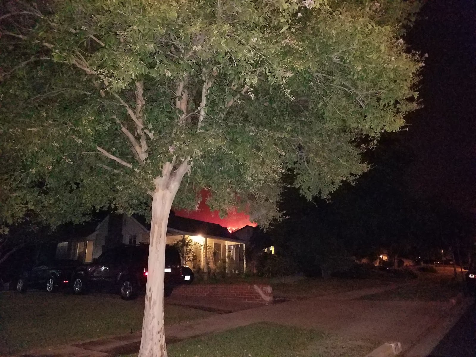 Đám lửa cháy bập bùng nhìn gần như sau lưng nhà tôi, gần lắm, từ nơi tôi ở đến chỗ cháy chỉ khoảng 10 phút lái xe. Cảnh sát gọi người quanh khu vực ấy di tản, may mắn nhà tôi nằm xa hơn chút xíu nên chưa phải đi. Đến khuya, tin tức bảo phải chuẩn bị áo quần sẵn sàng, có lệnh thì phải rời nhà ngay. Xem tivi, lửa ngập tràn như biển, như hoả ngục, chẳng biết hoả ngục có giống thế không?