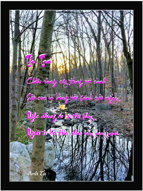 Chụp năm 2017 tại Stamford, Connecticut, USA THU TÀN Chiều vàng, cây đứng trơ cành Suối con in bóng trời xanh cuối ngày. Nghe chừng có sự đổi thay Người đi kẻ đến chốn này nay mai. Anh Tú Thu 2018
