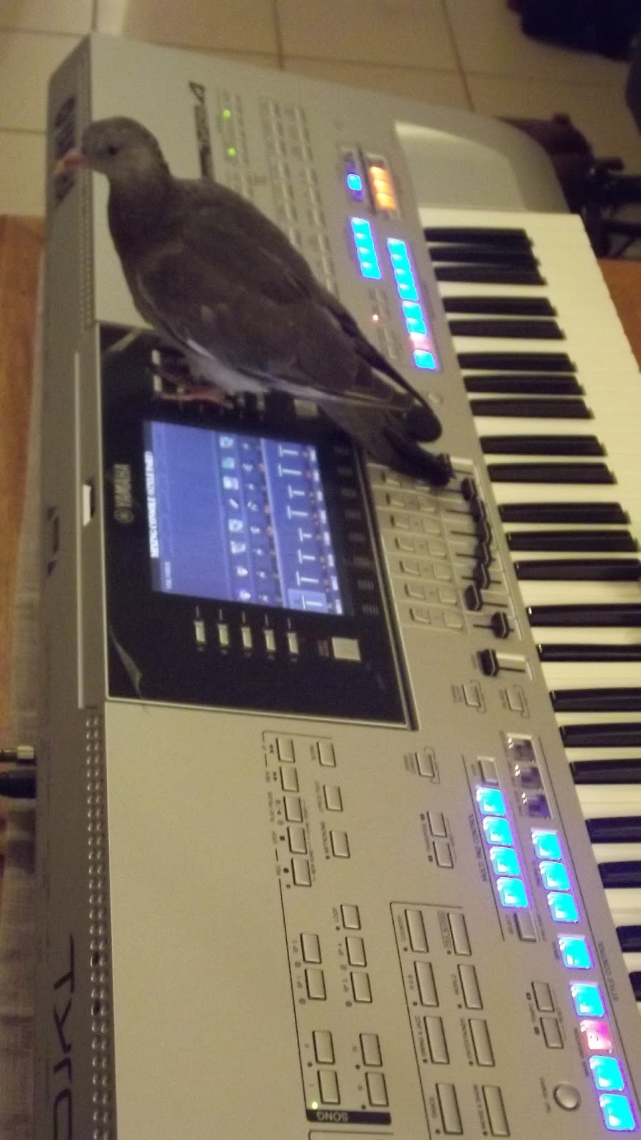 Từ 3 tháng nay,Pit lớn tộ, quanh quẩn trong nhà . Khi chúng tôi hát hò,chơi nhạc thì Pit lẩn quẩn chung quanh . Khi tôi nằm dài trên sofa,Pit nhẹ nhàng đậu yên trên bụng . Pit bắt đầu khám  phá tất cả dụng cụ nhạc khí . Chúng tôi biết cậu bé  rất yêu âm nhạc .