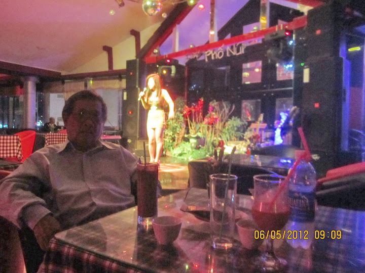 Chúng tôi chọn điểm PHỐ NÚI để đến . Khi nhân viên phục vụ đem thức uống đến như chúng tôi gọi cũng là lúc chương trình bắt đầu. Khởi đầu nhạc nhẹ và ca sĩ cũng có tuổi tôi thích loại nầy, càng về sau các ca sĩ có vẻ còn mới nhất là các cô ... Thôi thì ồn ào nói chuyện với nhau phải ra dấu! Có lẽ vào ngày làm việc nên ít khách, nhìn quanh tôi nghĩ khách tới nghe nhạc có nhiều vị trông như ở xa và con cháu, bè bạn mời tới đây như thù tạc hay giới thiệu sinh hoạt của thành phố về đêm với khách không phải cư dân Đà Lạt Thành phố nầy có vài đứa con tới du lịch 5, 7 lần, nhất là gia đình đứa con trưởng lúc còn ở VN và qua Mỹ sau cùng, vì rằng cứ mỗi lần có các em về thăm quê hương lại trước sau gì cũng đều tổ chức đi lên đây ... Khi chúng tôi định ra về thì người điều khiển chương trình giới thiệu bản nhạc cuối, thành thử chúng tôi nán lại "cho trọn tình với nhau"!!