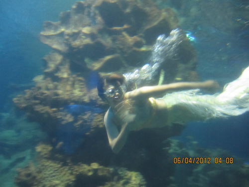 Show trình diễn của Mỹ Nhân Ngư hình như chỉ một lần mỗi ngày, vào lúc ấy các loại cá dữ chắc đã cô lập ... Tượng "Người Cá" đặt ở phía Nam cuối của khu giải trí và từ đó có thang bộ và thang máy phối hợp đưa khách trở lại nơi lấy cáp treo trở vô đất liền ... Khoảng hơn 7 giờ chuyến chúng tôi có vài ba cô gái trẻ mặc đồng phục nói cười vui vẻ ... Họ đã xong ca của họ trong ngày ... Tôi cố tìm những nơi xưa tôi thường đến như Cầu Đá, Chợ Chụt có phở trứ danh ... nhưng không thể nào xác định được ...44 năm rồi còn gì !? NhàQuê Jan 09, 2013 -o-o-o-o-o-o- @SeaWorld - San Antonio - Texas - USA