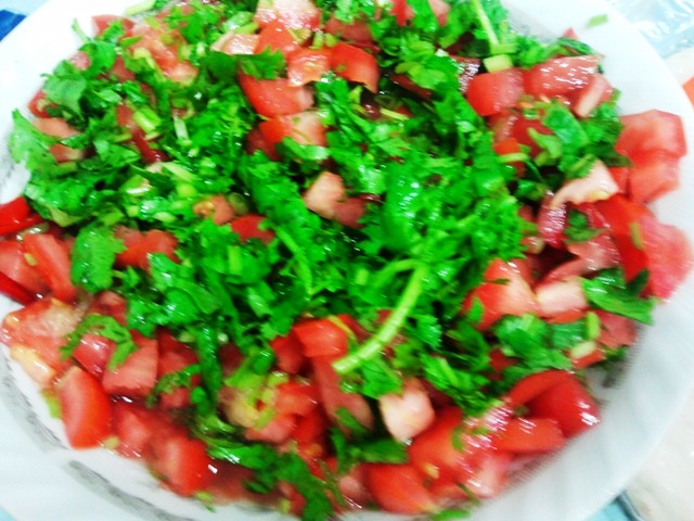 Tomate muốn cho bớt nước, khi cắt tomate xong, ctly để chút muối vào , sau đó đổ vào rỗ cho bớt nước, cho nên khi làm dầu dấm thì CtLy khg để muối, món này làm dầu dấm cho chút tỏi nếu khg có củ hành ....