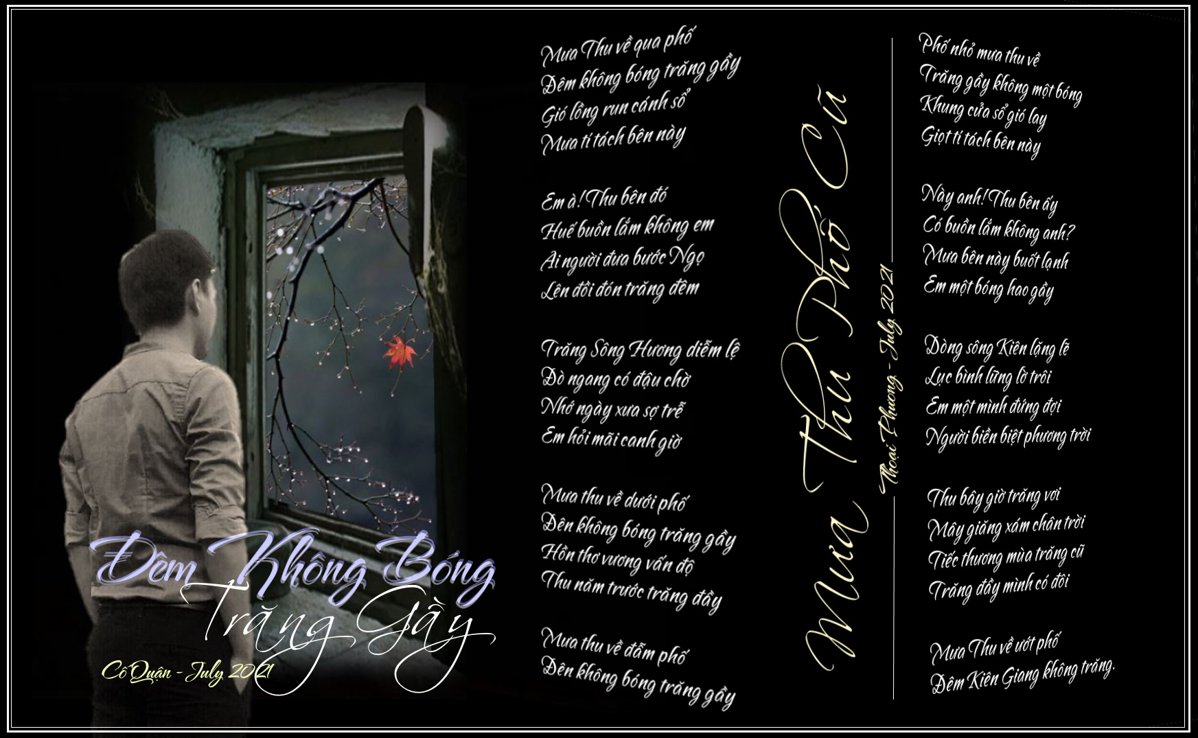 Vui thật...hôm nay thơ của nhị tôi lại được đứng cạnh thơ của chị hai Thoại Phương rồi. Tháng Chín Thu Về Trắng Hạt Bay Sông kiên tháng chín thu về Mây trời bảng lảng bốn bề heo may Gió lên nghiêng cọng cỏ gầy Vàng pha tơ nắng bến này khói giăng Hoàng hôn tím nhuộm màu trăng Hồn tư tưởng áo cung hằng...chén say Sông Kiên tháng chín heo may Bốn bề hạt trắng hạt gầy mưa thu Vào viết tám câu lục bát, nửa trả công anh Hoa đã lộng hình và nửa tặng chị Thoại Phương vậy. Thân, Nhị