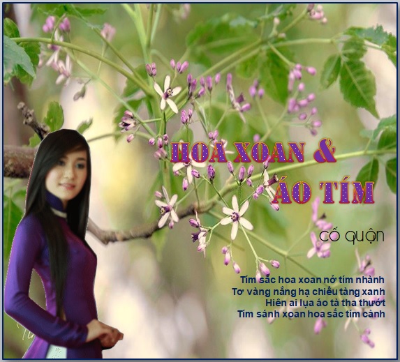 Hoa Xoan và Áo Tím         Tím sắc hoa xoan nở tím nhành        Tơ vàng nắng hạ chiếu tàng xanh        Hiên ai lụa áo tà tha thướt        Tím sánh xoan hoa sắc tím cành            Cố Quận