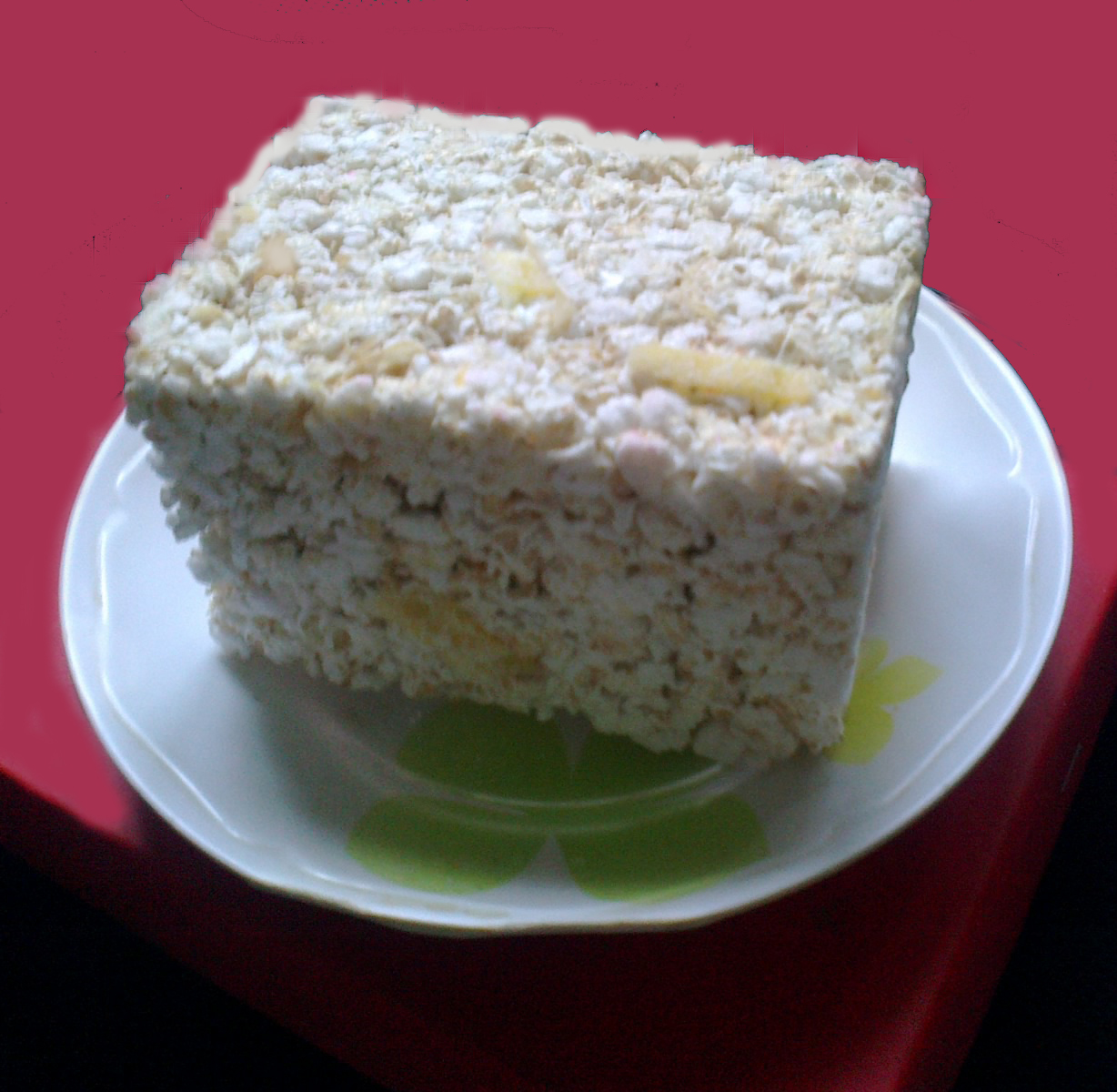 Khi còn bé ,tôi cũng rất mê cốm hộc .Cứ đến ngày 23 tháng chạp âm lịch ,thế nào tôi cũng theo mẹ đi chợ tết để nhắc mẹ mua cho dù chưa có năm nào mẹ quên cả.Cốm mua về được bố bày trang trọng trên bàn thờ để dâng cúng ông bà tổ tiên. Khi hết ba ngày tết, cúng tiễn ông bà đi xong, cha mẹ mới cho phép lấy cốm hộc ăn. Bịch cốm khá lớn nên bao giờ cũng phải cắt ra thành những miếng nhỏ đưa mời nhiều người cùng ăn. Ba mẹ tôi thường nhâm nhi cốm hộc với trà tầu hay trà sen. Còn tôi thích xin thêm một , hai miếng chạy ra đầu xóm để chia miếng ngon cùng mấy đứa bạn .